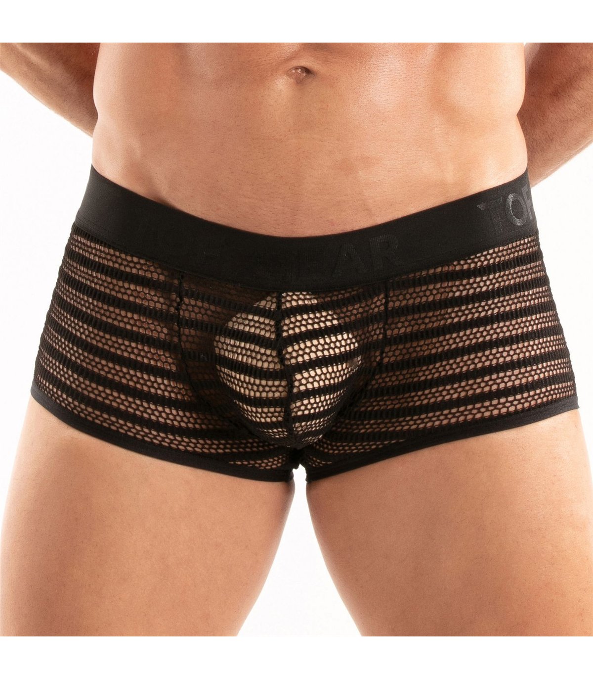 Entdecken Sie den exklusiven Sheer Mykonos Backless Trunk in edlem Schwarz, ein außergewöhnliches Kleidungsstück, das Design und Tragekomfort auf höchstem Niveau vereint. Dieser Short Boxer ist vollständig am Rücken geöffnet und besticht durch sein ausgefallenes Stretch-Spitzenmaterial mit feinem Häkel-Effekt. Die Kombination aus transparentem Stoff und innovativem Schnitt sorgt für eine verführerische Optik, die zugleich maximales Wohlgefühl beim Tragen garantiert.