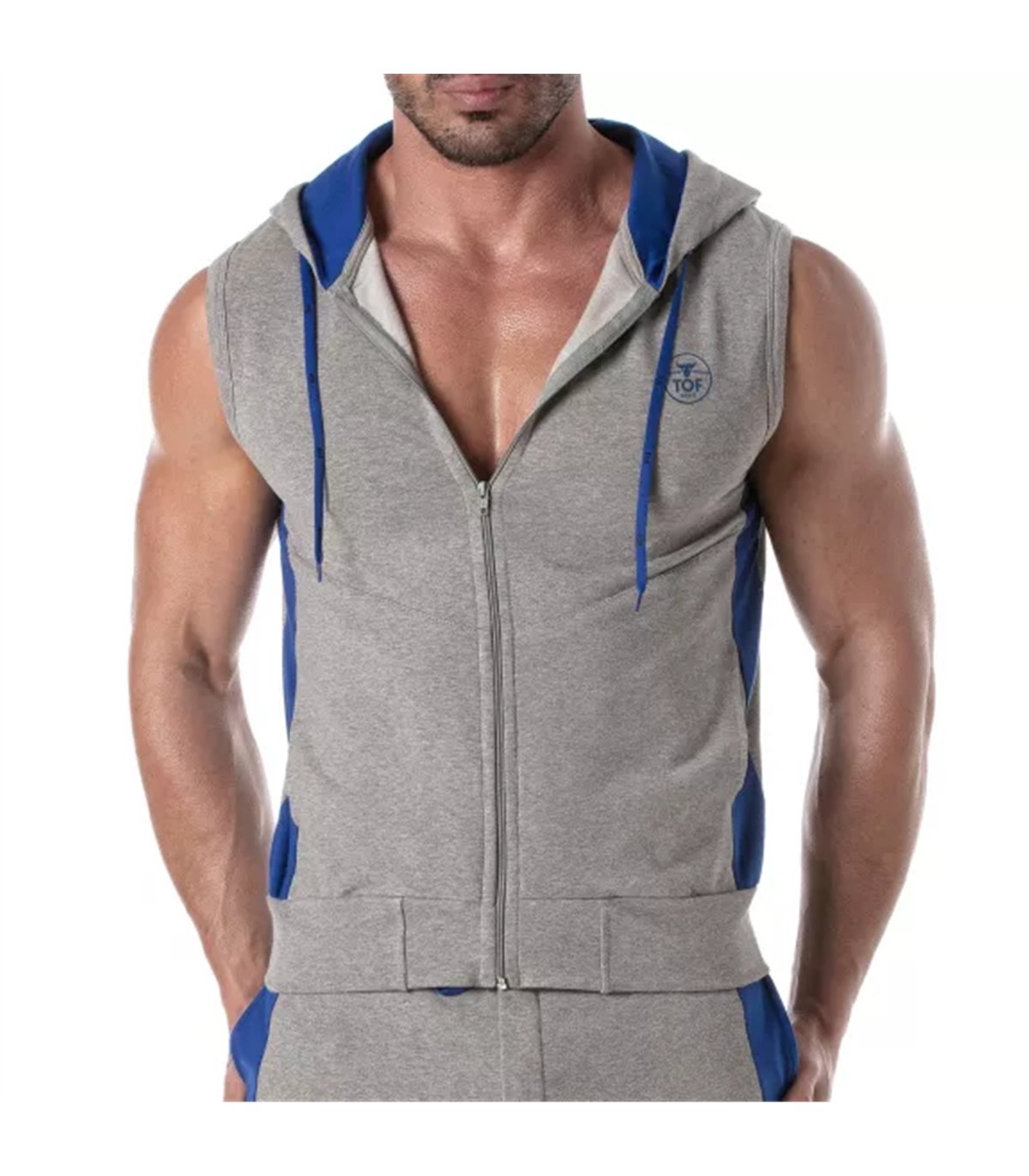 Ärmellose Zip-Hoodie Weste – Stretch, Komfort & praktische Taschen, Grau | TOF Paris