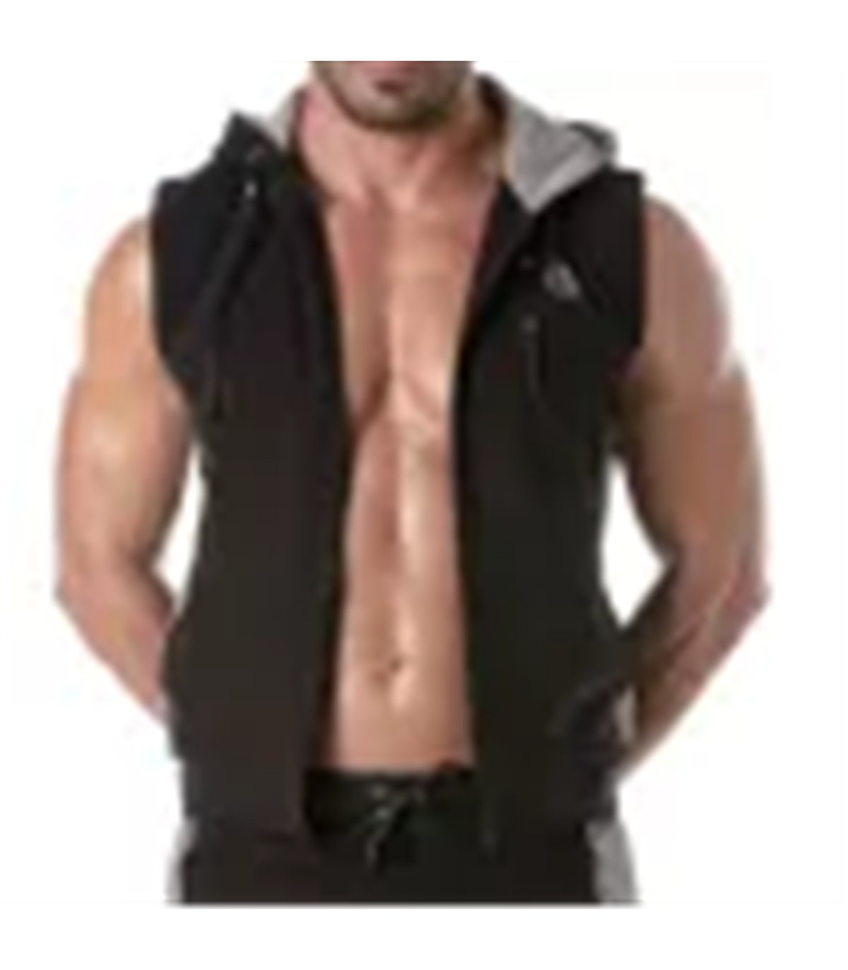 Ärmelloser Zip-Hoodie schwarz – Stretch, Taschen & Kontraststreifen | TOF Paris