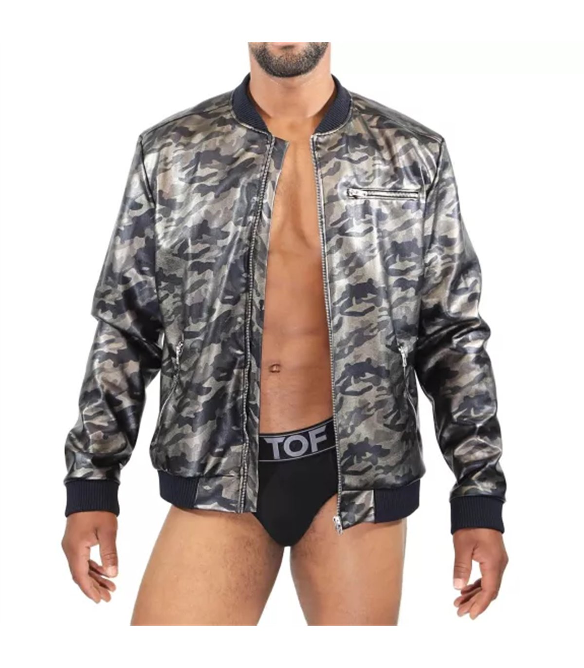 Die markante Mittelnaht am Rücken betont die Konturen und sorgt für eine leicht taillierte Passform, die die Figur elegant umschmeichelt. Diese Designer-Jacke wurde mit viel Liebe zum Detail in Paris entworfen und in Frankreich gefertigt – Qualität „Made in France“ wird hier großgeschrieben. Das reflektierende TOF-Logo auf dem linken Ärmel rundet das Design gekonnt ab und macht die Commando Bomber zu einem echten Blickfang. Mit ihrem glänzenden braunen Camouflage-Muster ist sie ein unverzichtbares Must-Have für alle, die Wert auf außergewöhnliche Mode legen.