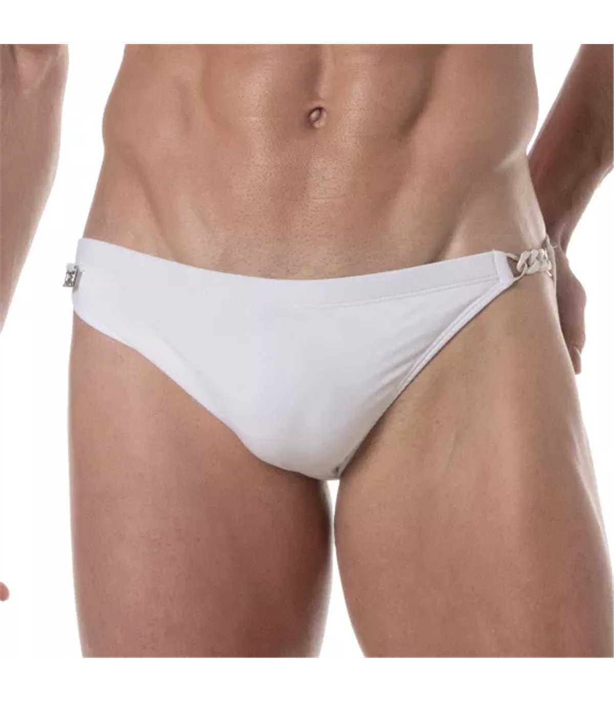Herren Badebriefs mit seitlicher Kettendetail – Eleganter Look, Weiß | TOF Paris
