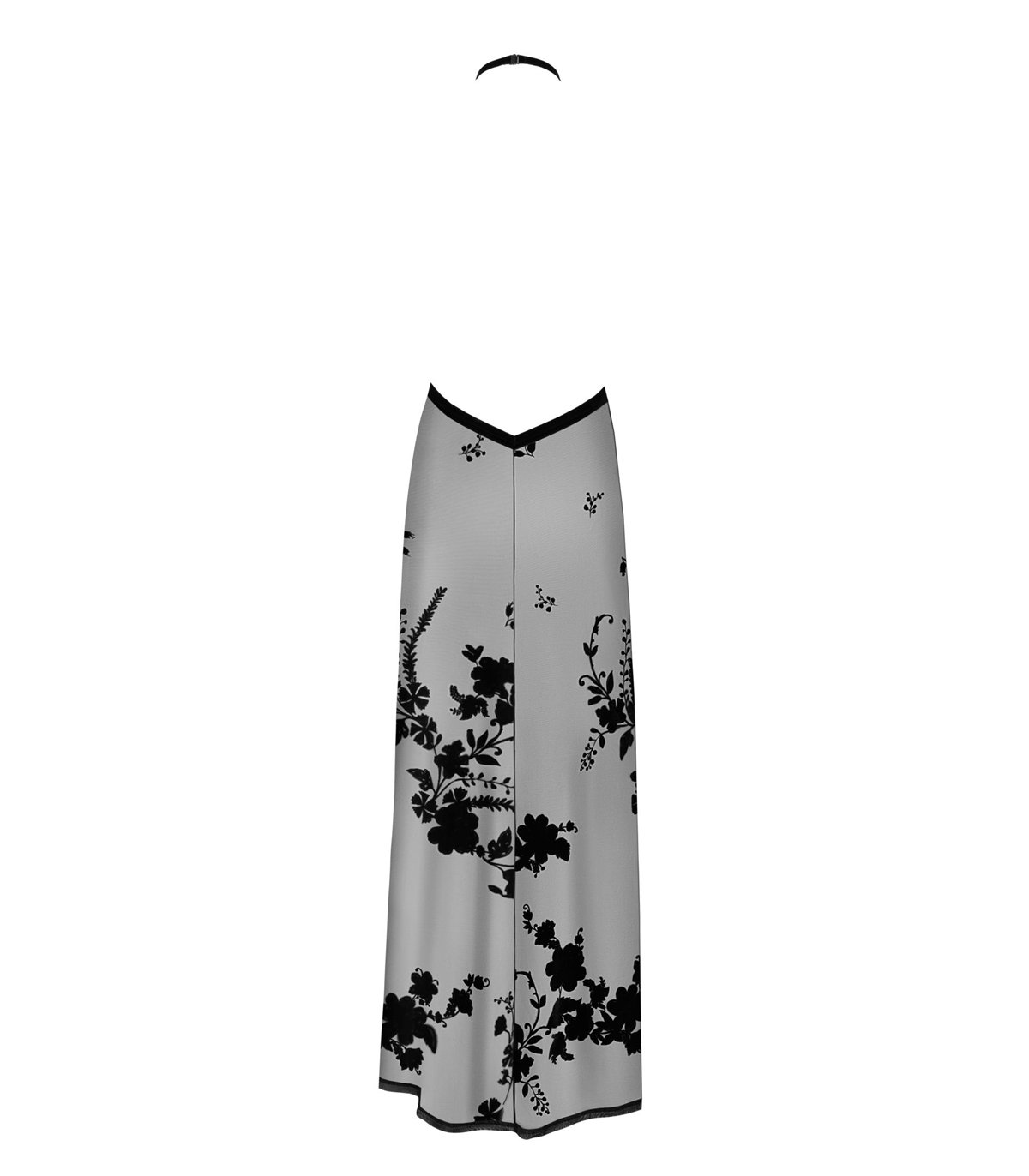 • Transparentes langes Kleid aus beflocktem Netzstoff