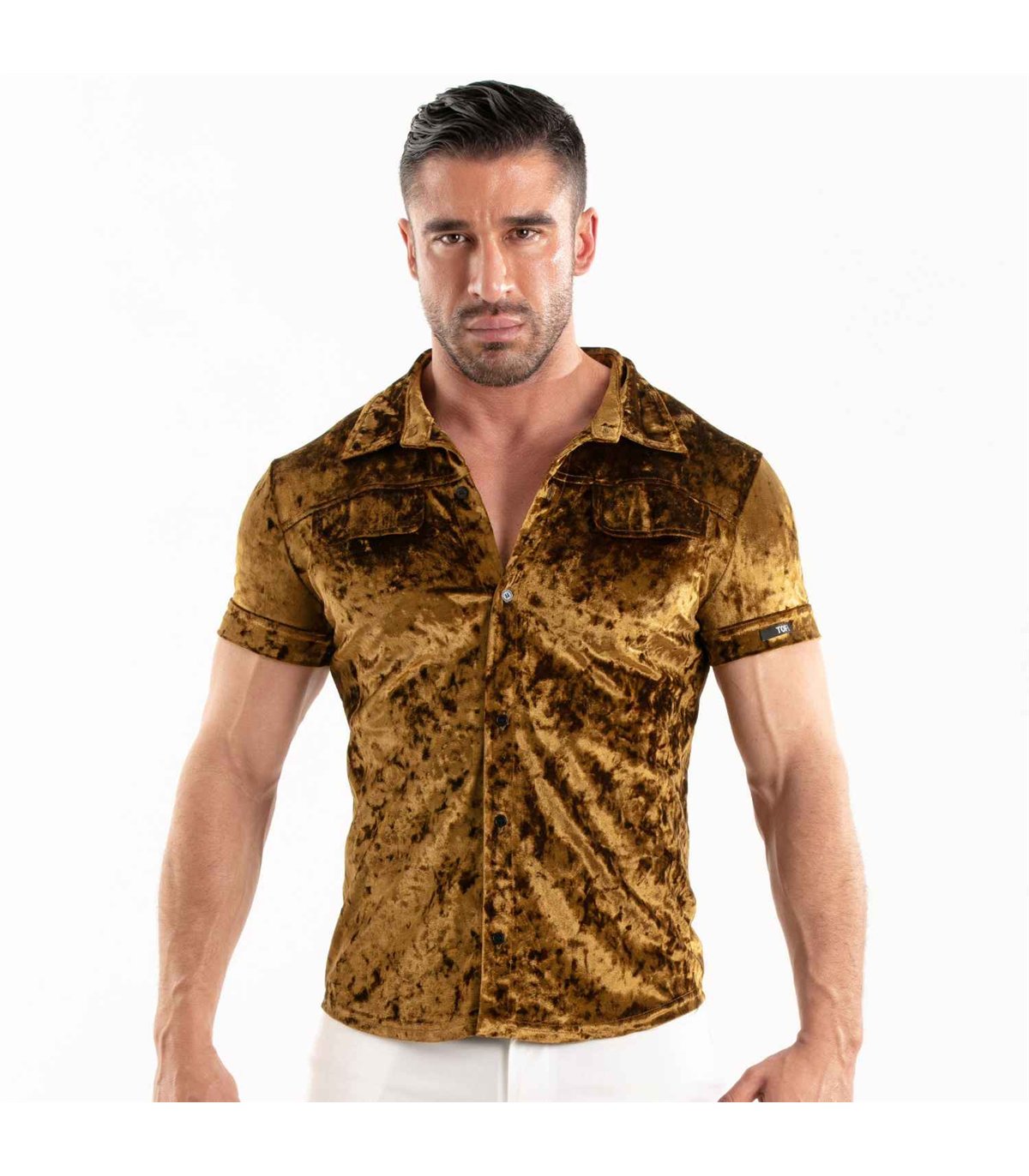 Samtene Herrenbluse Gold – Slim Fit mit elegantem Glanz | TOF Paris