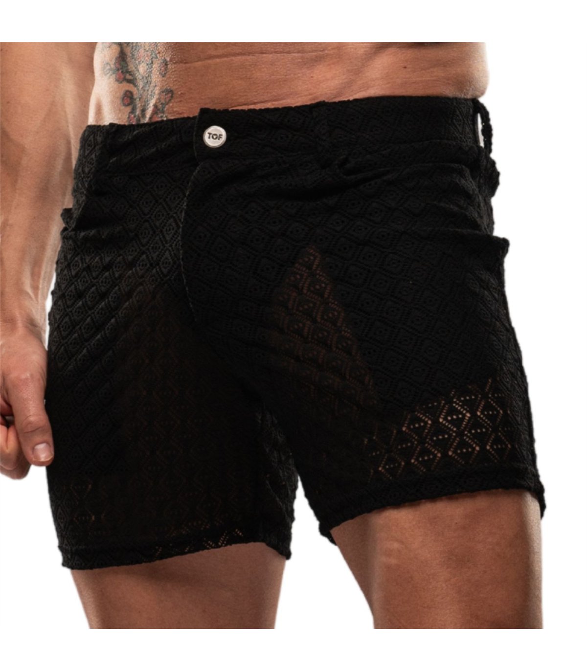Shorts Mid-Thigh – Slim Fit, Stretch-Spitze, Tiefe Taschen, Schwarz | TOF Paris