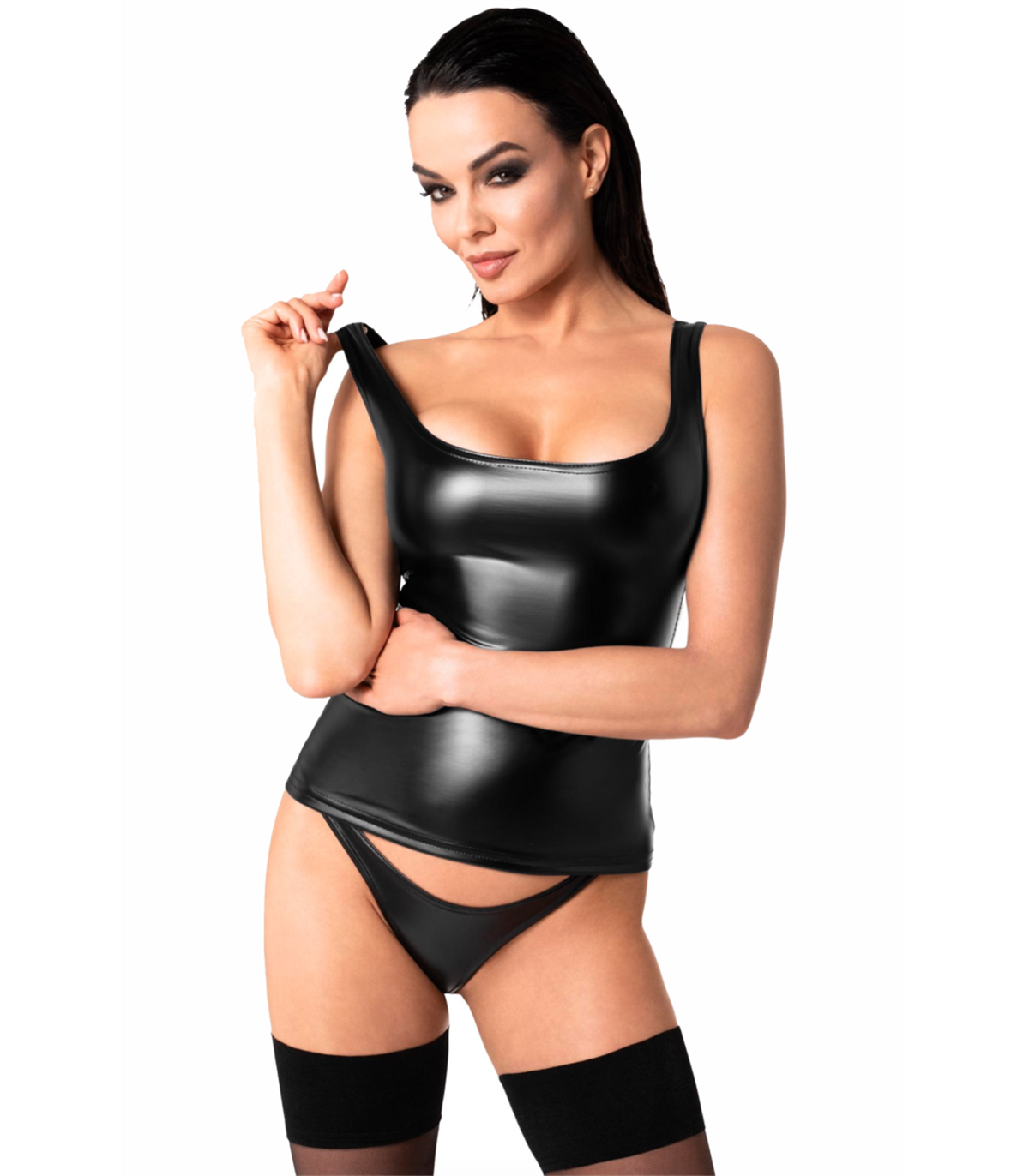 Trägertop mit glänzender Oberfläche und elastischer Passform | Noir Handmade