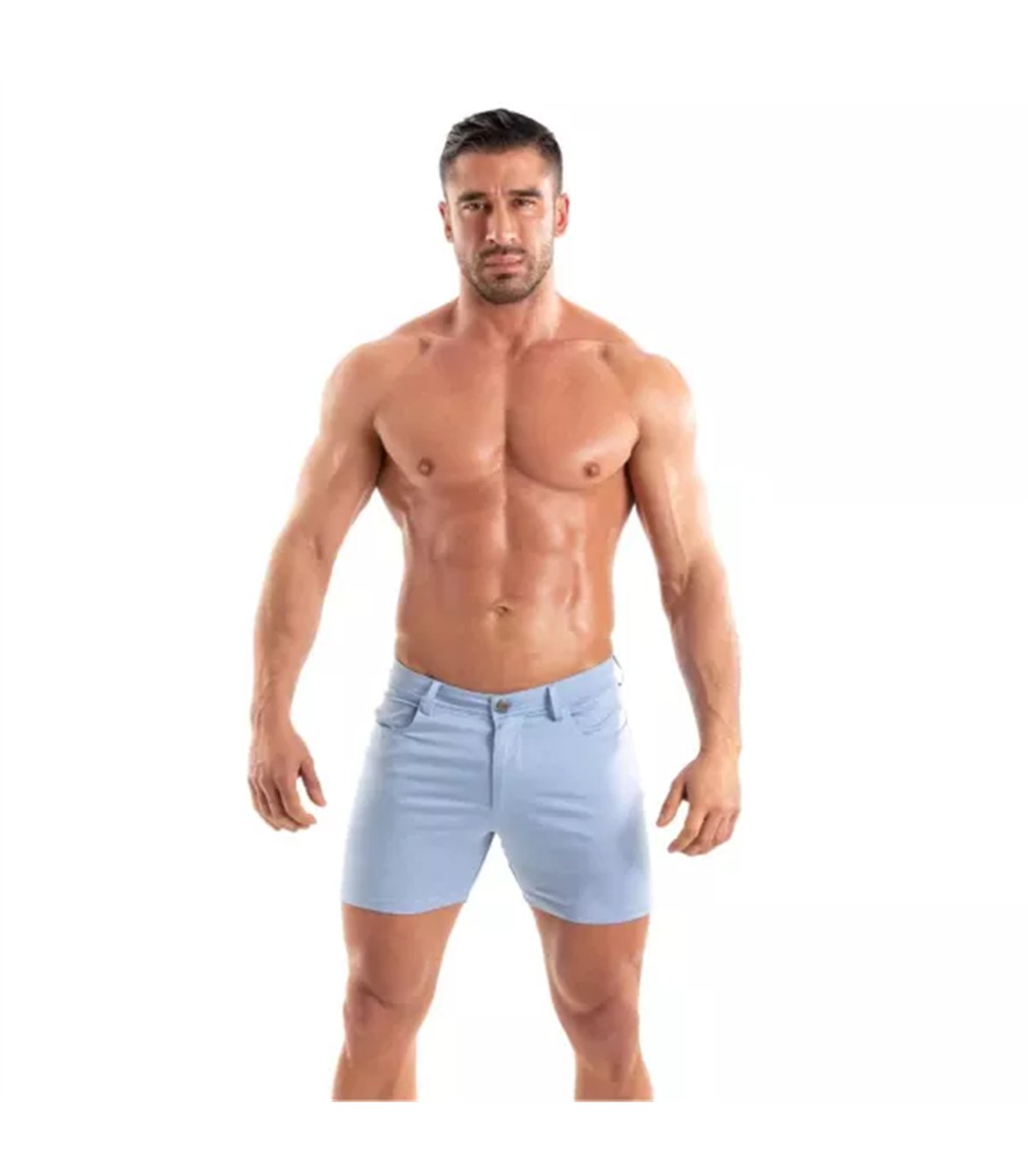 Erleben Sie mit der TOF Paris Chino Short ein unvergleichliches Kombinationserlebnis aus moderner Eleganz und höchstem Tragekomfort. Diese Herren Chino Shorts setzen Ihre Silhouette gekonnt in Szene – dank des schmal geschnittenen Designs und des tief sitzenden Bunds, das eine sportlich-sexy Optik kreiert. Ob für den entspannten Stadtbummel, einen Tag am Strand oder ein stilvolles Abendoutfit: Die vielseitige Herren Kurze Hose ist in 13 leuchtenden Farbtönen erhältlich, darunter das angesagte Blau, das sich mühelos zu vielen Looks kombinieren lässt.