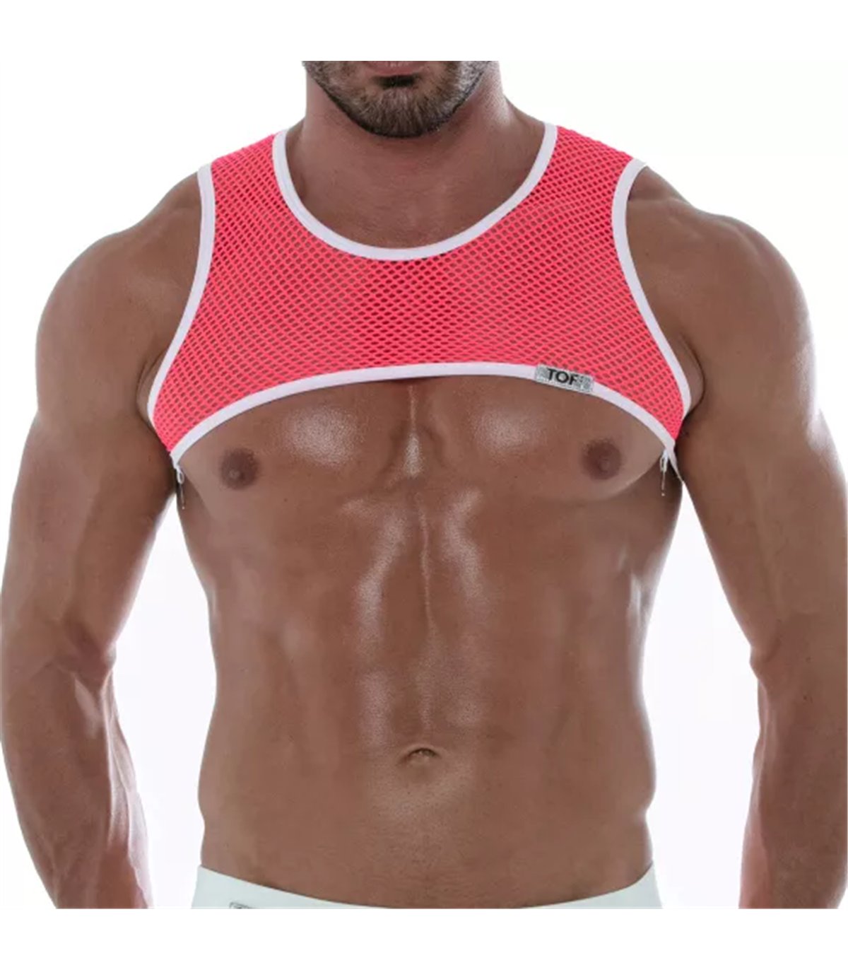 Setzen Sie ein modisches Statement mit dem „Neon Mesh Harness Pink“ von TOF Paris, einem unverwechselbaren Accessoire aus der Kategorie Harnesses für Männer. Dieses leuchtend pinke Netz-Harness besticht durch sein fluoreszierendes Design und vereint Komfort mit einem einzigartigen Style, der speziell für den Einsatz als stilvolles Gay Clubwear-Highlight konzipiert wurde. Mit seiner auffälligen Farbe und dem raffinierten H-förmigen Schnitt unterstreicht das Harness markant die Konturen der Brust und sorgt für einen echten Blickfang auf jeder Party.