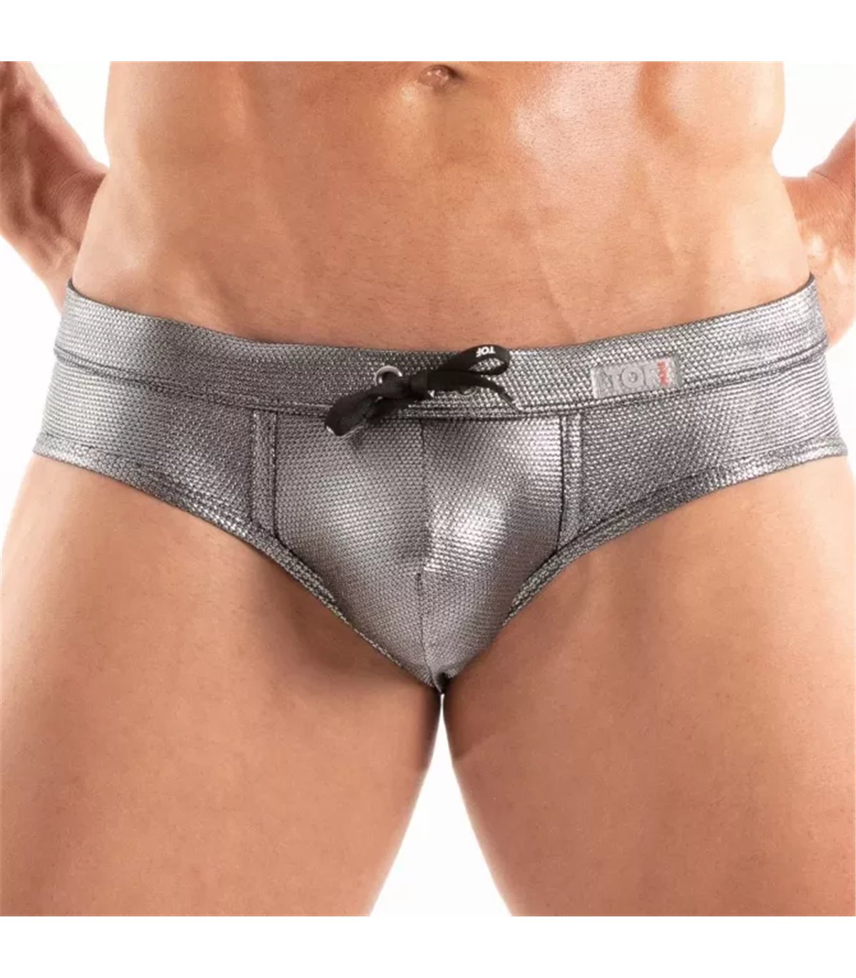 Tauchen Sie ein in die Welt avantgardistischer Männermode mit dem Metal Swim Brief in der edlen Farbe Silver von TOF Paris. Dieses außergewöhnliche Badehöschen vereint modernste Materialien und Design zu einem ultra-sexy Look, der Sie am Strand oder Pool zum strahlenden Mittelpunkt macht. Hergestellt aus hochwertigem italienischen Stoff mit recyceltem Polyamid, bietet der Metal Swim Brief ein unvergleichliches Tragegefühl – wie eine zweite Haut, die sich perfekt an Ihren Körper anschmiegt.