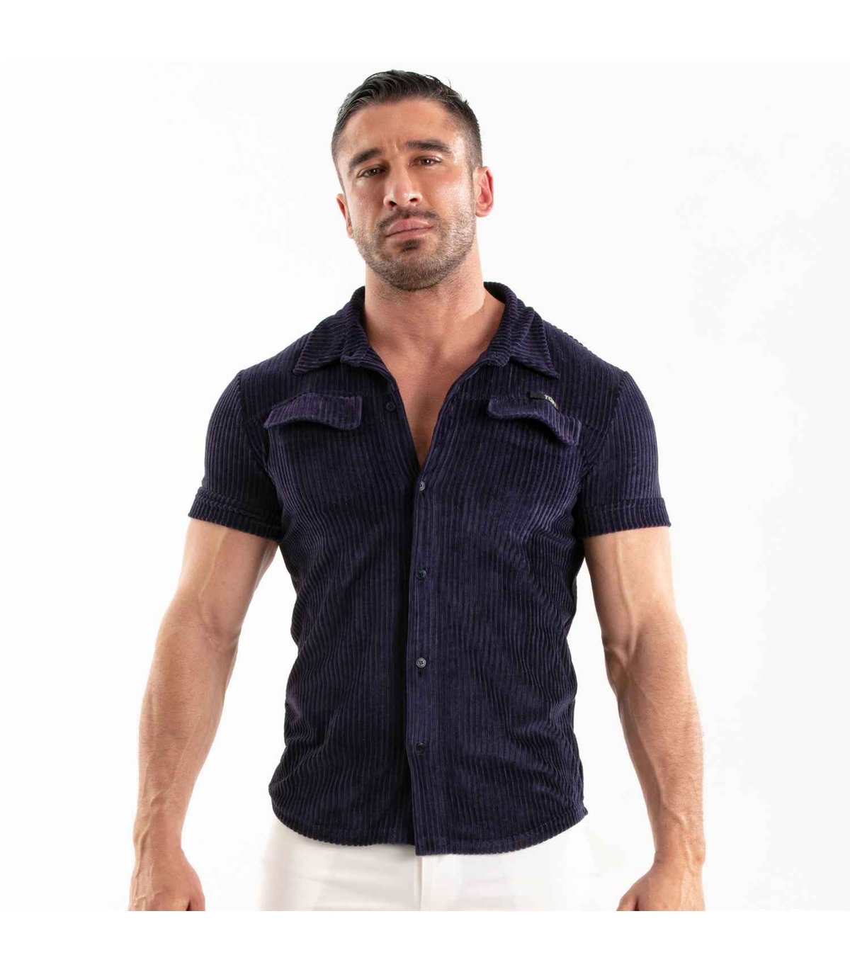 Herren Cordhemd kurzarm – Retro-Chic & strukturierter Schnitt in Marineblau | TOF Paris
